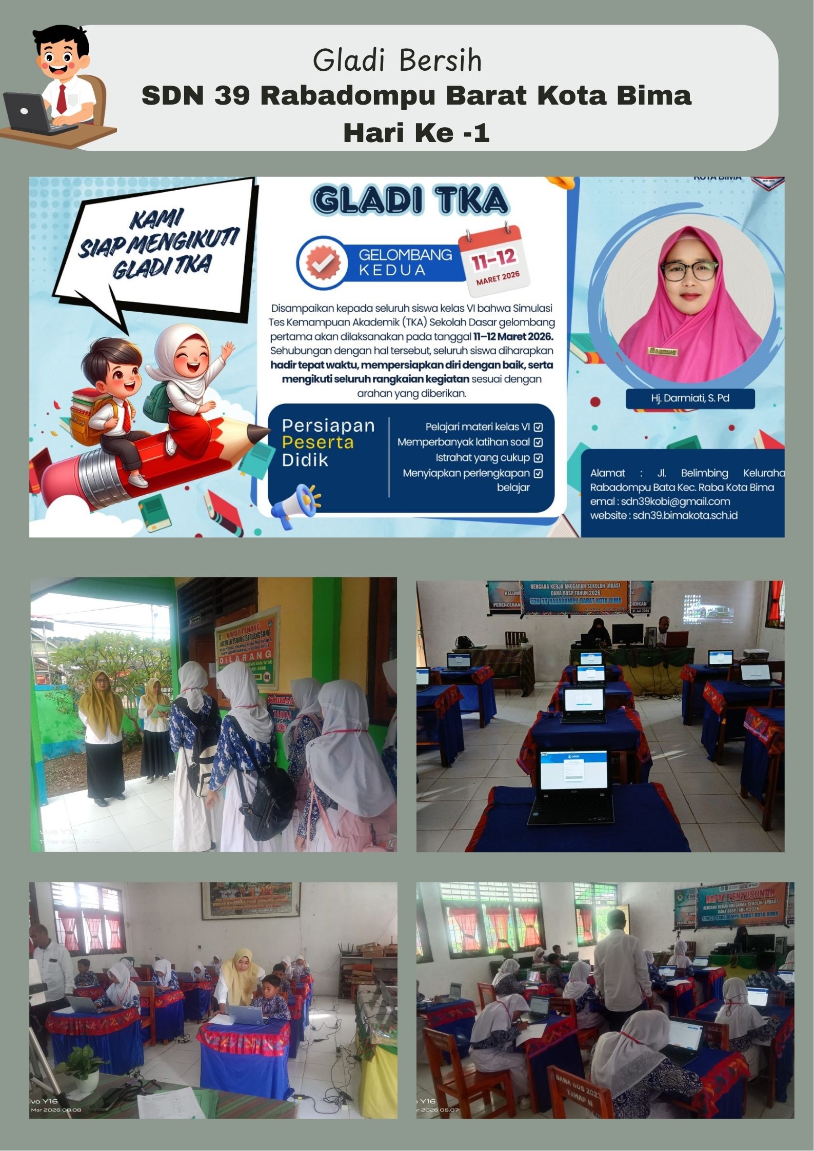 Siswa Kelas VI SDN 39 Rabadompu Barat Kota Bima Ikuti Gladi Bersih TKA dengan Antusias